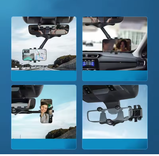 Enhance your driving safety and convenience with the 360° Rotatable & Retractable Rearview Mirror Phone Holder, designed for a secure and hands-free experience. This universal rearview mirror mount allows you to adjust your phone to the perfect viewing angle without blocking your road view. Ideal for GPS navigation, video calls, live streaming, or recording your drive, it ensures comfort, visibility, and safety on every journey.