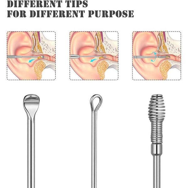 ➤ Kit Contents: Spiral, Spring, Scoop, Flat Earpicks (6 Tools Total)