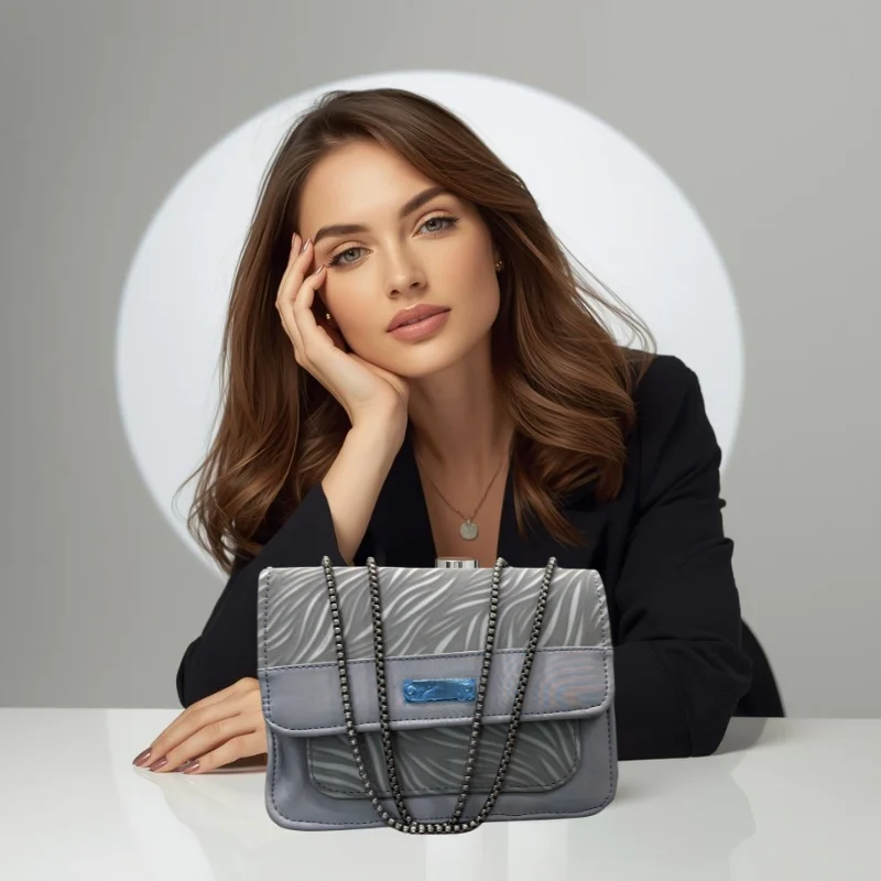 ➤ 1 × Crescent Luxury Faux Leather Shoulder Bag (Grey)